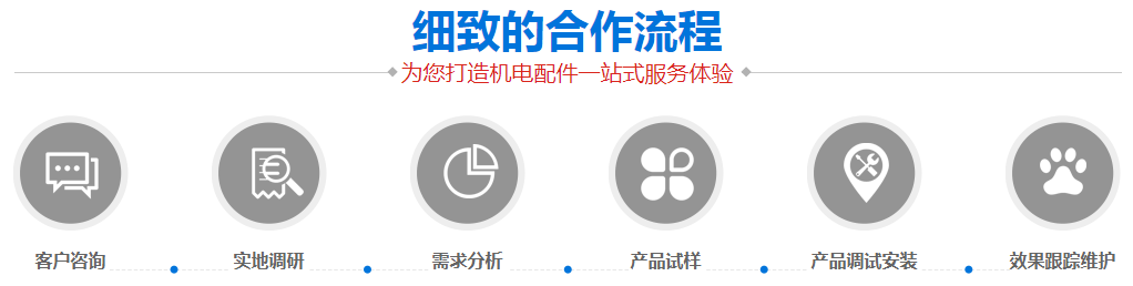 2、產(chǎn)品試樣:根據(jù)客戶需求提供合適的樣品試用,密切關(guān)注試用情況,調(diào)用供應(yīng)廠家技術(shù)資源,不斷調(diào)試、更換合適樣品,直至達(dá)到客戶需求,在機(jī)電配件使用過程中碰到的各類問題提供現(xiàn)場解答。