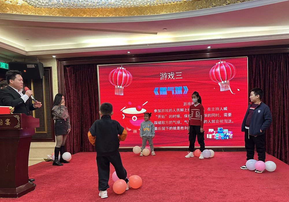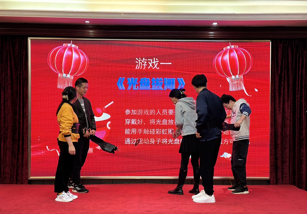 《光盤拔河》哦諾多姿的身體擺動(dòng)、《戴帽子吃糖》猙獰狼狽的努力表情和《歡樂踩氣球》你來(lái)我往的大混戰(zhàn),更是給年會(huì)增添了許多樂趣。